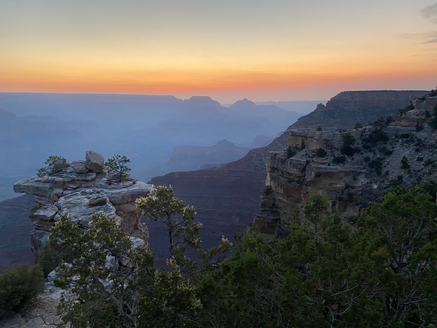 Yet the most stunning was the last stop we made at one of the most famous national parks—the Grand Canyon.  We rose before the sun to watch the dawn break in the East: the rocks awakening first with shades of purple and indigo, slowly evolving to a fiery glow—that was far more than mesmerizing—, as each turn and crag and dramatic drop off into the beyond was slowly lit up by the glorious sun’s life giving rays.  And in that moment of staring out at such miraculous splendor, I could not help but think to myself that “grand” is really the only appropriate name in our English language for this liminal space.